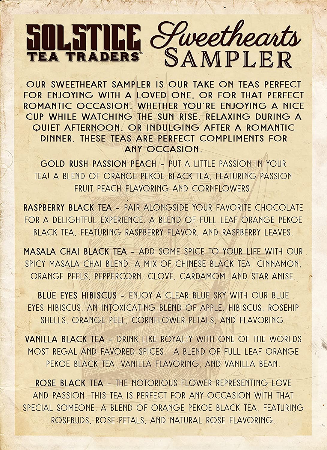 Solstice Tea Traders Sweetheart Loose Leaf Tea Gift Set with Six Varieties of Tea